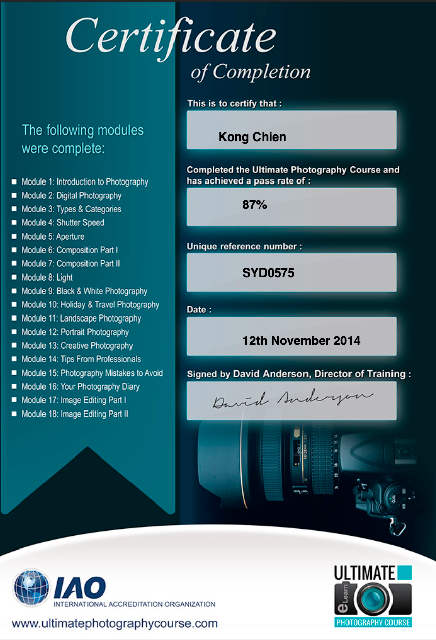 Advanced Certificate in Professional Photography